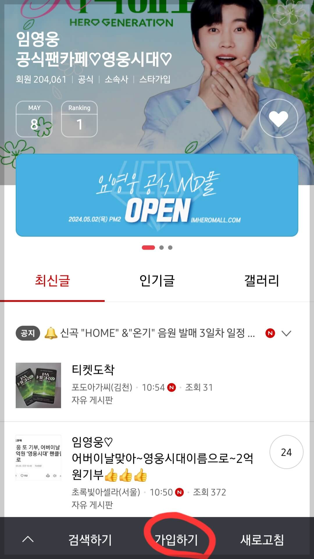 임영웅 팬카페 가입방법