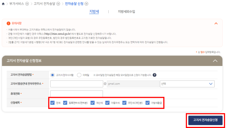 지방세 중에도 많은 세목이 있는데 모두 전자송달이 가능할까요? 모든 세목의 전자송달을 신청할 수는 없습니다. 아래의 신청방법을 통해 어떤 세목들을 신청할 수 있는지 살펴보겠습니다.