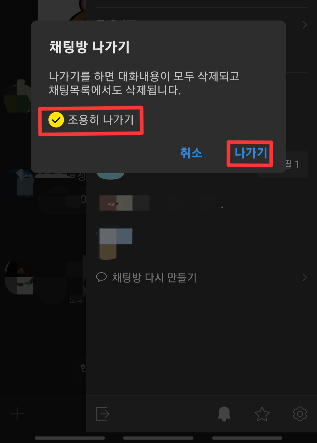 카카오톡 채팅방 조용히 나가기 설정 방법