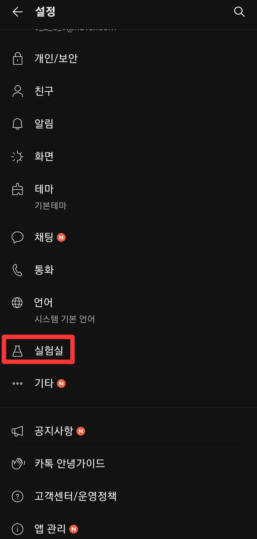 카카오톡 채팅방 조용히 나가기 방법을 보기 전에 먼저 카카오톡의 재미난 기능 하나 먼저 알려드릴게요. 바로 카카오톡 실험실이라는 것입니다. 카카오톡 실험실에서는 출시를 준비 중인 새로운 기능을 먼저 이용해 볼 수 있습니다. 실험실에서 운영 중인 기능들을 사용해 보고 다양한 의견을 남겨주시면 됩니다. 그러면 카카오톡에서 여러 의견들을 적극 반영해 기능들을 정식 출시하게 되는 것이죠.