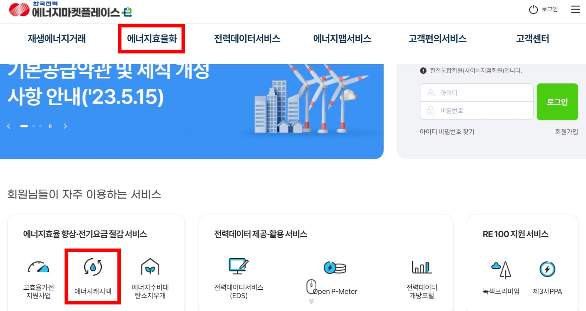 한전에너지캐시백 신청방법