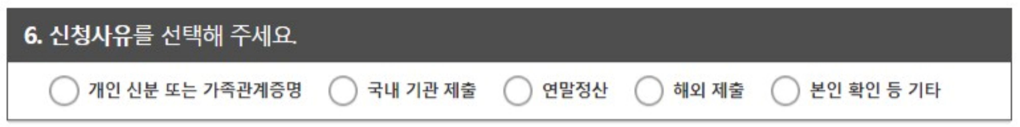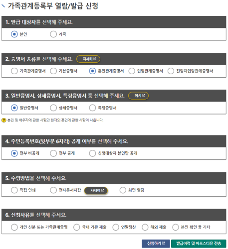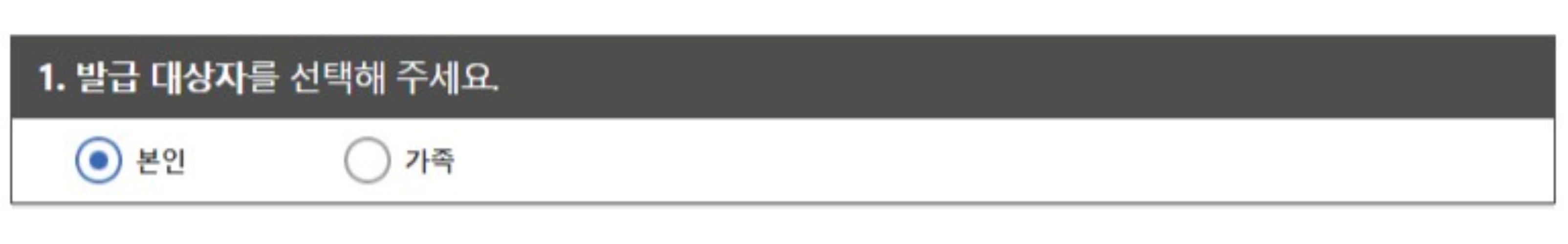 1. 발급대상자는 본인이나 가족을 선택할 수 있습니다. 하지만 가족 중에 형제나 자매의 증명서 대리발급은 불가능합니다.