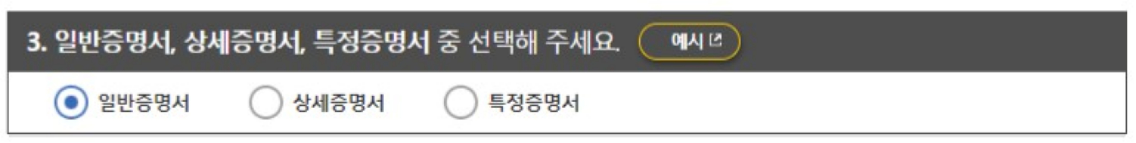 3. 일반, 상세, 특정 증명서는 위에서 언급한 것처럼 내용적으로 큰 차이가 있으니 신중히 선택해야 합니다.