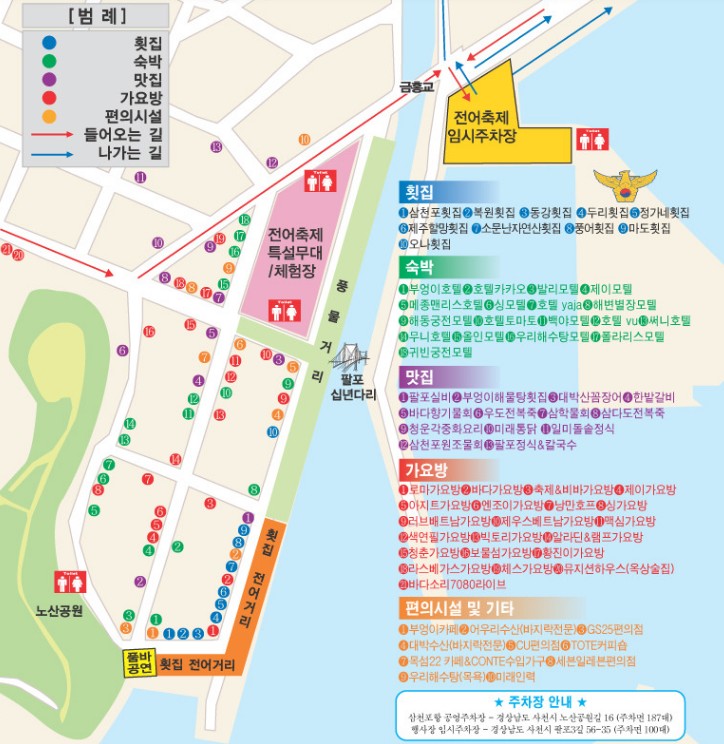 행사장 밖 식당에서 전어를 드시고 싶으시다면 팔포음식특화지구에 있는 삼천포 전어 맛집에서 식사를 하시는 것도 추천드립니다.